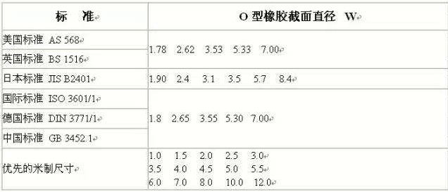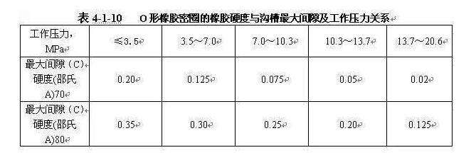 密封間隙的大小與壓力等G、橡膠硬度及O形橡膠密封圈斷面的直徑相關情況,見下表: