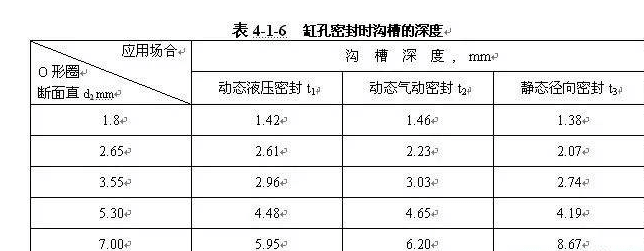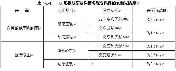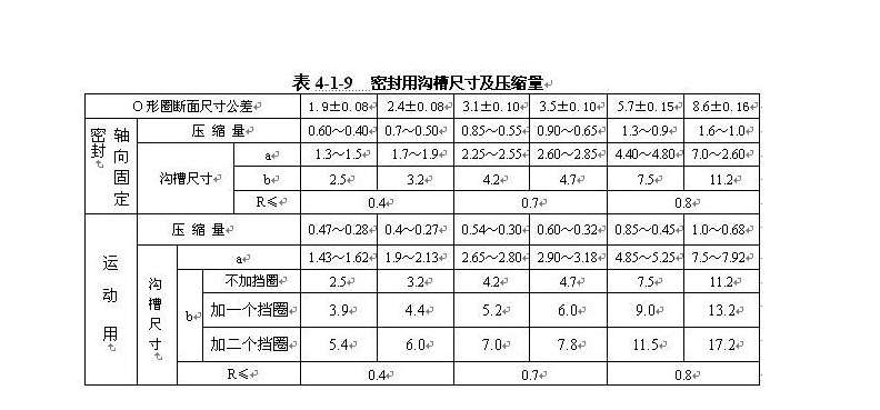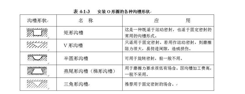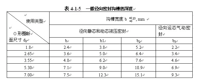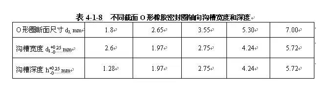 O形橡膠密封圈是安裝在各種溝槽中使用,現將安裝溝槽情況列于表4-1-3
