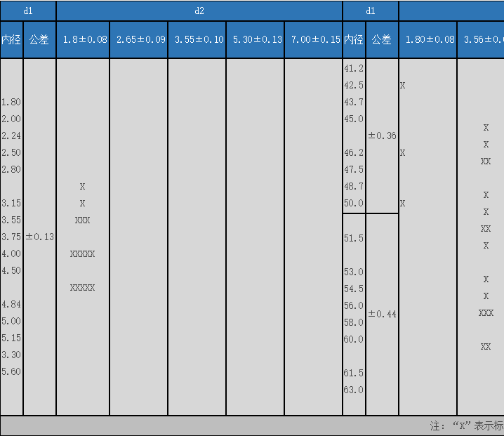 通用標準O形橡膠密封圈的規格表